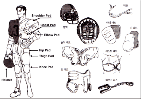 ¹Ì½ÄÃ౸ÀÇ Àåºñ´Â ¼±¼öÀÇ ¾ÈÀüÀ» À§ÇÏ¿© Ãæ°ÝÀ» ¿ÏȽÃÄÑÁÖ´Â ÇʼöÀûÀ¸·Î Âø¿ëÀ» ÇØ¾ßÇÏ´Â 8°¡ÁöÀÇ Çʼö º¸È£´ë°¡ Àִµ¥, ¸Ó¸®, ¾î±ú, Çã¹÷Áö, ¹«¸, ¸¶¿ì½ºÇǽº, À¯´ÏÆû »óÀÇ ¹× ÇÏÀÇ µîÀÌ´Ù.